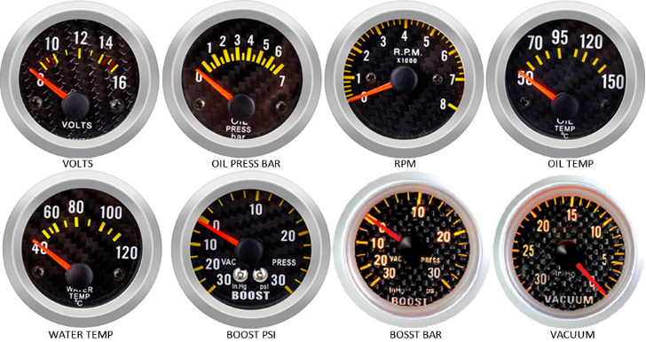 52mm TURBO PSI CARBON FACE WATER TEMP CARBON FACE Guages